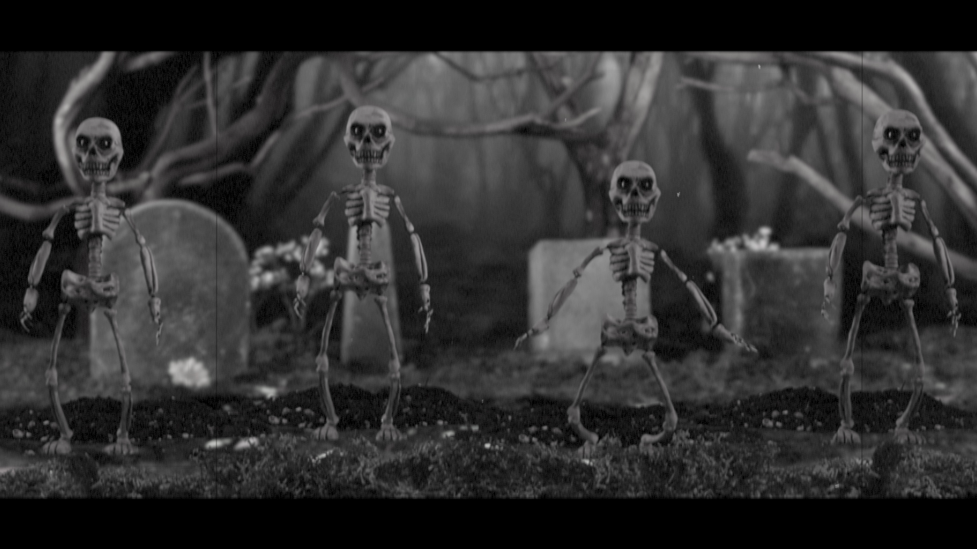 Un tribut adus scurtmetrajului clasic Skeleton Dance/Danse Macabre al lui Disney, în care vedem schelete ridicându-se din mormânt și zebnguindu-se sub lună plină.