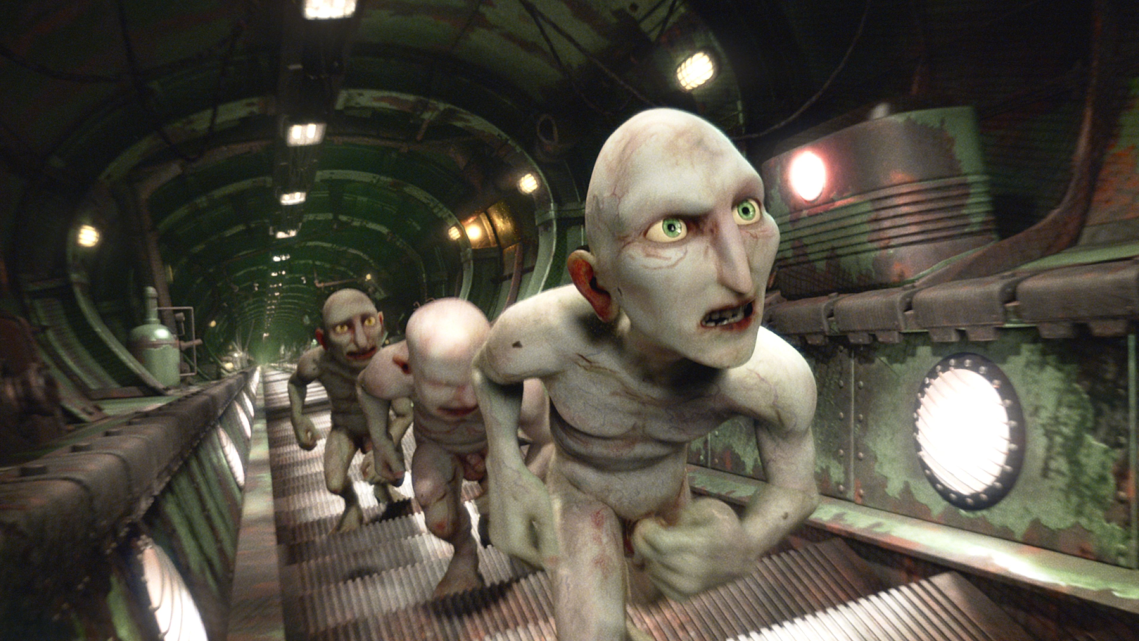 Three people are struggling up an escalator that is going down. As they walk, they discuss the big questions - what is the point? Two of them, the strivers, are of the opinion that happiness is to keep going and working your way to the top, while the doubter wonders if it is not better to relax and stay with the stairs to the bottom. The escalator is a metaphysical fable, a dystopian picture is drawn of an alternative reality that is a parallel to our own world, a parallel that is to be depicted with an industrial design and a heavy and repetitive sound track where music and content slide into each other to create an unreal and ghostly atmosphere, while voices, dialogue and animation are to bring out the human in the situation. The escalator is a parable, the man in the machine who seeks to find meaning in it all.